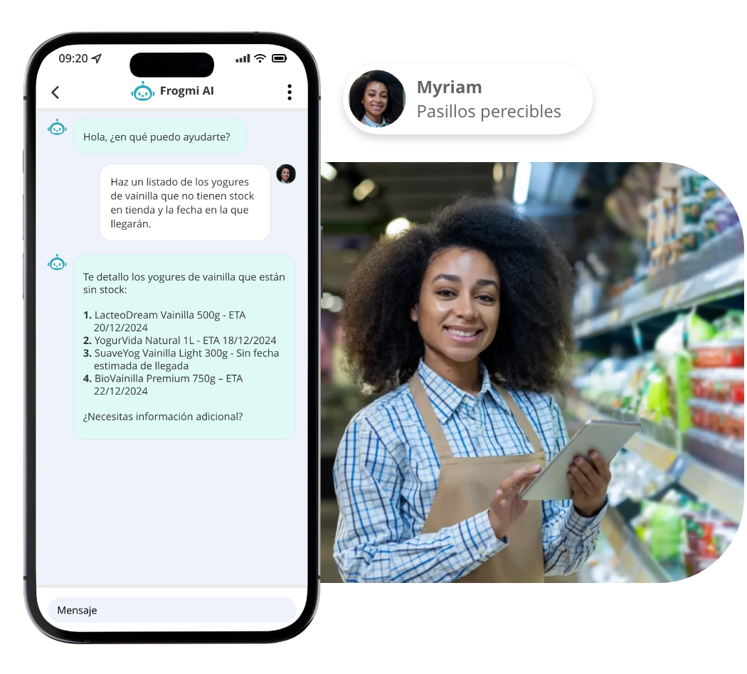 Tu equipo de vendedores necesita confirmar stock de un SKU específico, verificar fechas de vencimiento o consultar ubicaciones de productos. ¿Cómo lo resuelven sin abandonar el piso de venta?