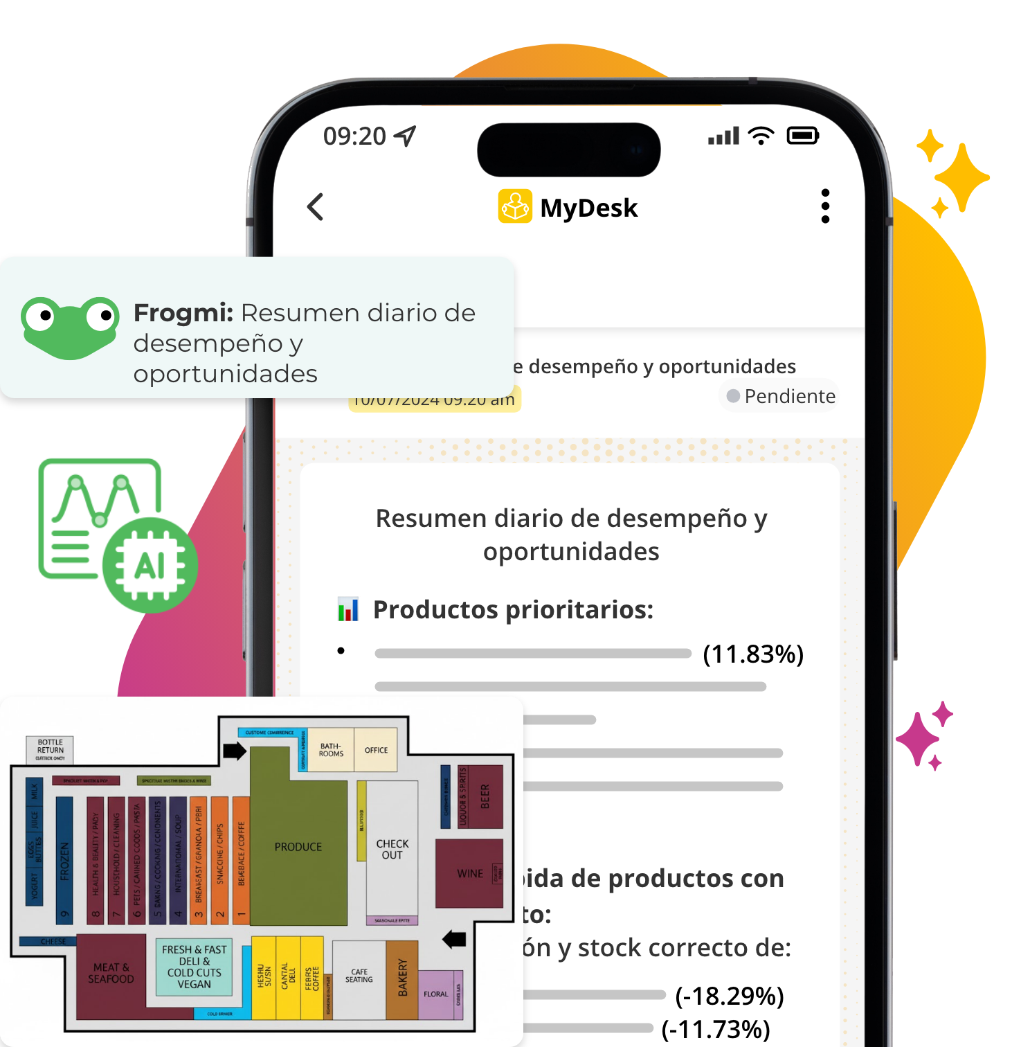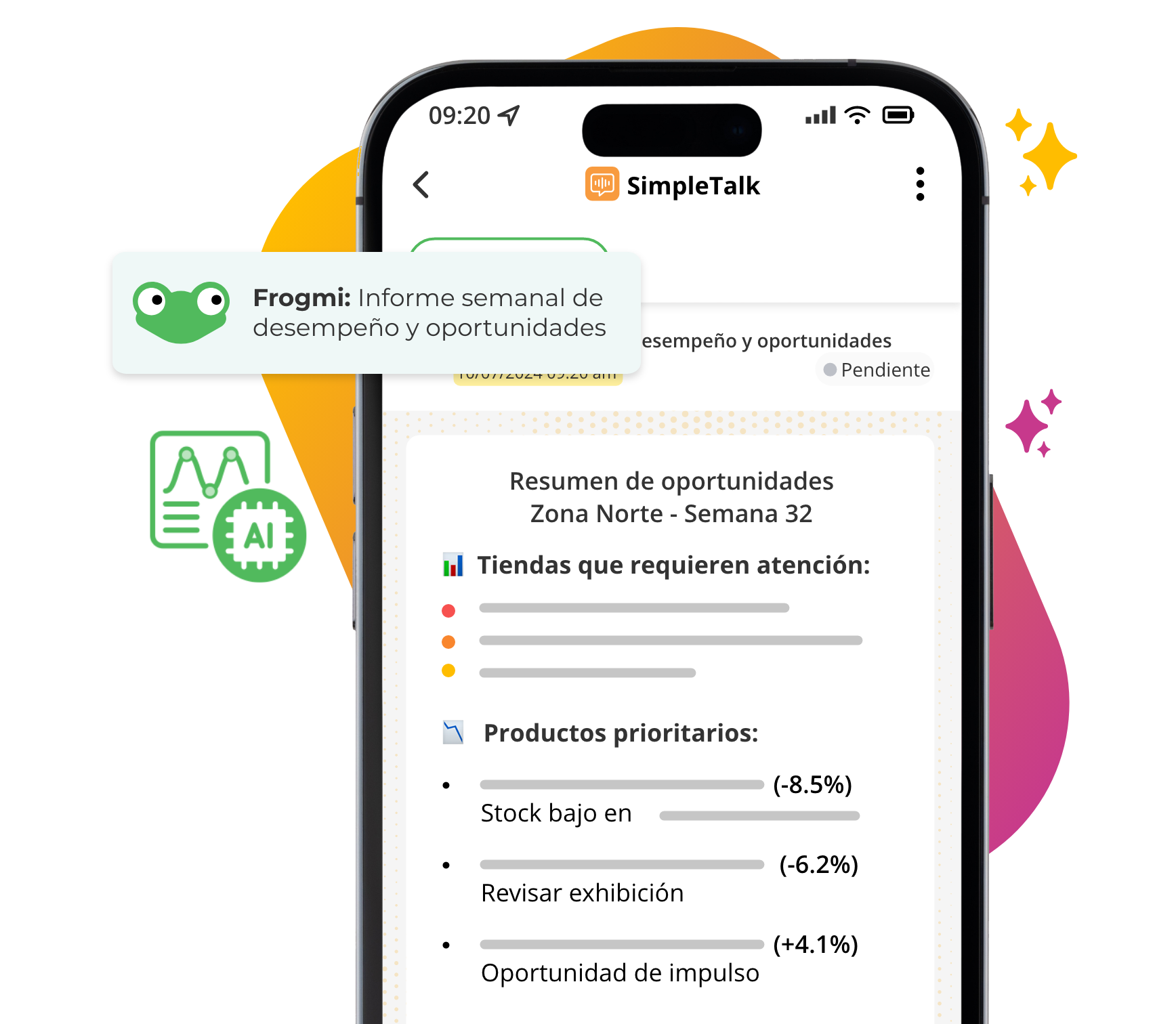 Analiza datos de ventas, inventario, campañas y ejecución desde Frogmi y tus sistemas corporativos para generar reportes personalizados. Identifica tendencias, prioriza acciones y entrega recomendaciones adaptadas al rol de cada colaborador.