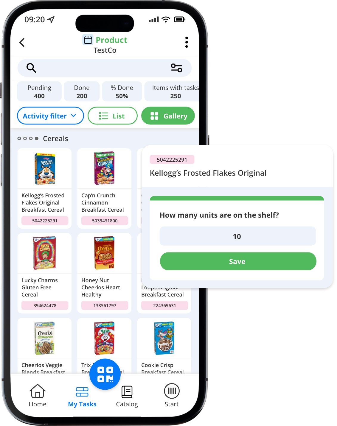 Automatically upload product lists for inventory. Field teams receive tasks and easily identify items via image-based navigation. Inventory updates occur automatically through seamless integration with your internal systems.
