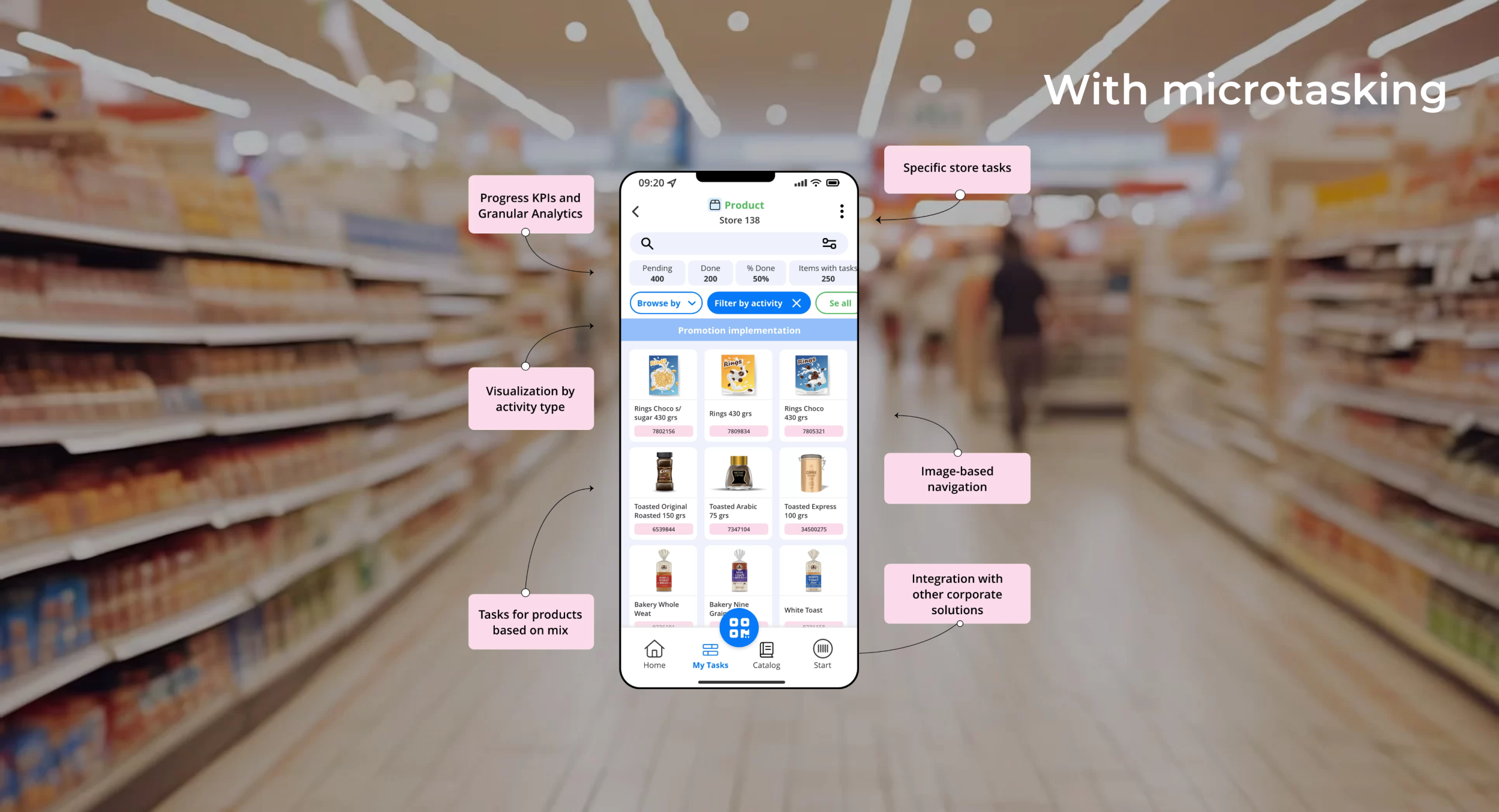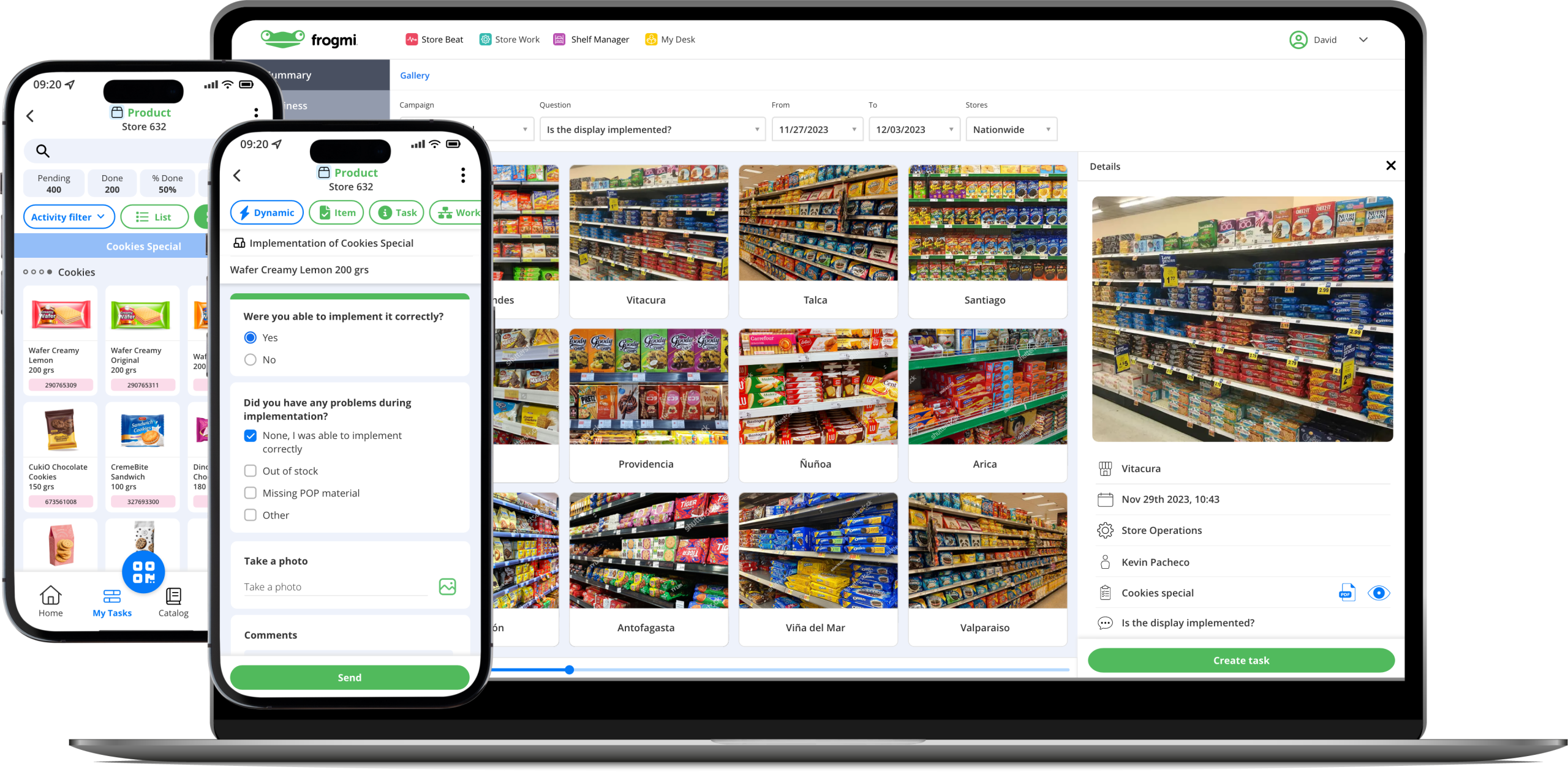 Create and assign promotions as instant tasks to any store. Provide field teams with guidance and reference images for seamless implementation while capturing photographic evidence of execution. HQ gains real-time visibility to analyze deployment quality through native dashboards.