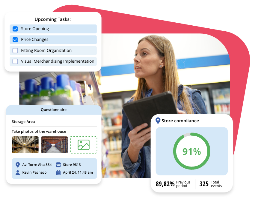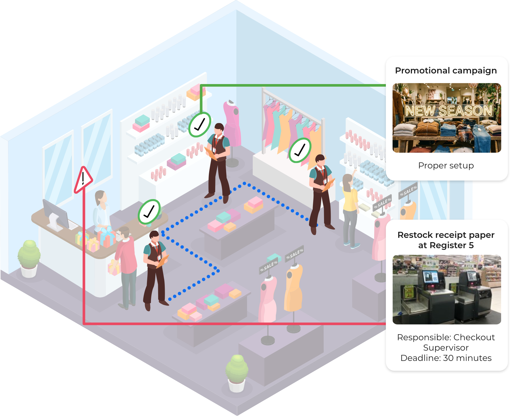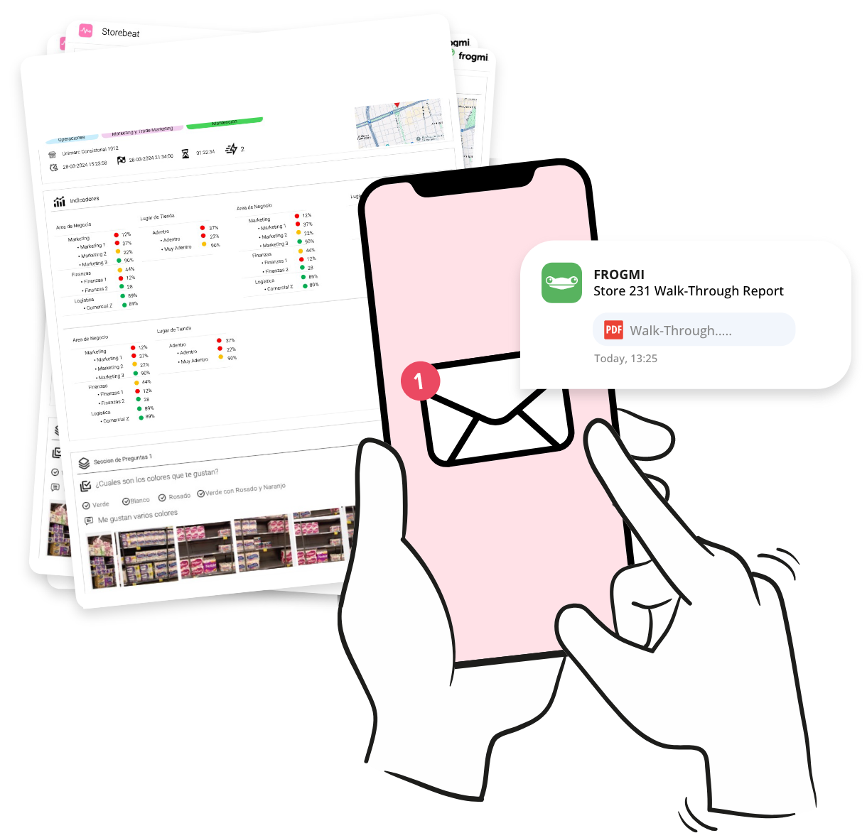 Your field teams capture images of the storefront using a smartphone to generate instant insights. Our AI analyzes the footage to validate campaign execution, cleanliness standards, safety protocols, and more, transforming visual evidence into immediate corrective actions.
